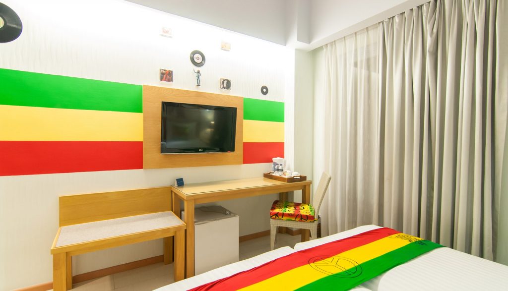 One good thing about music, when it hits you, you feel no pain. Like the quote from Bob Marley Rhadana Kuta Bali also provide unique experience “sleep with Bob Marley” with colorful Red yellow green decoration, and even you can find the disc from bob marley album not only Bob Marley you also can find “The beatles” theme at our room.